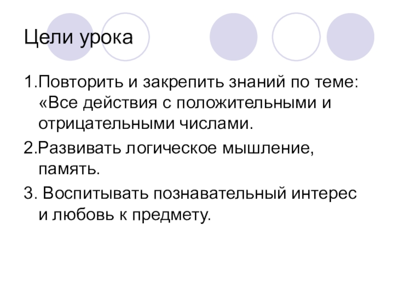 1.Повторить и закрепить знаний по теме: «Все действия с положительными