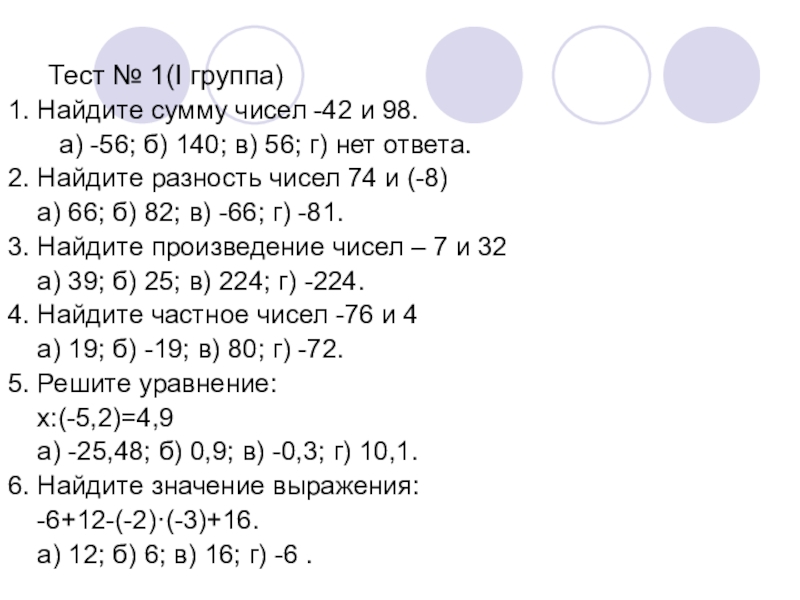 Слайд 21Тест № 1(I группа)