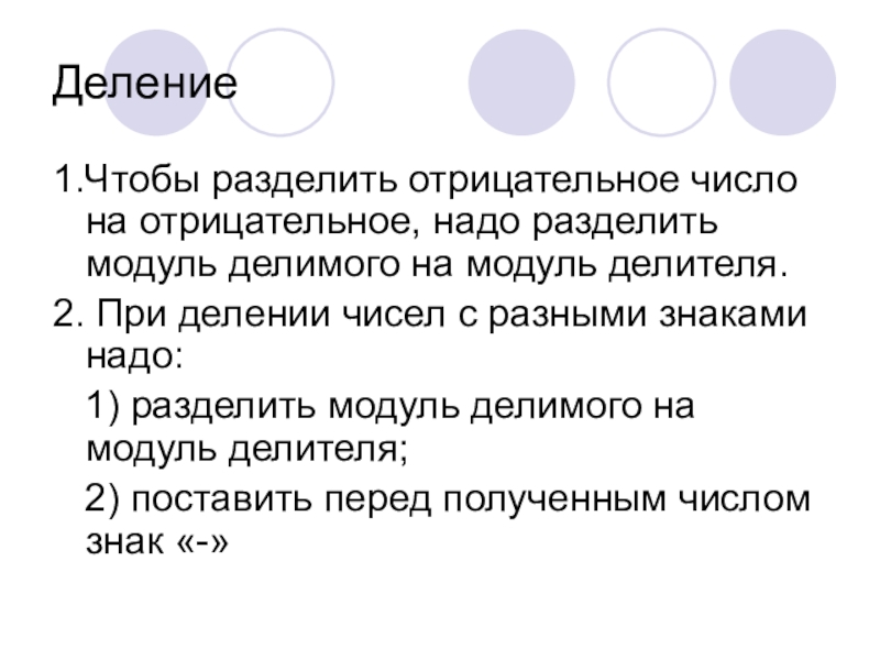 1.Чтобы разделить отрицательное число на отрицательное, надо разделить модуль делимого на
