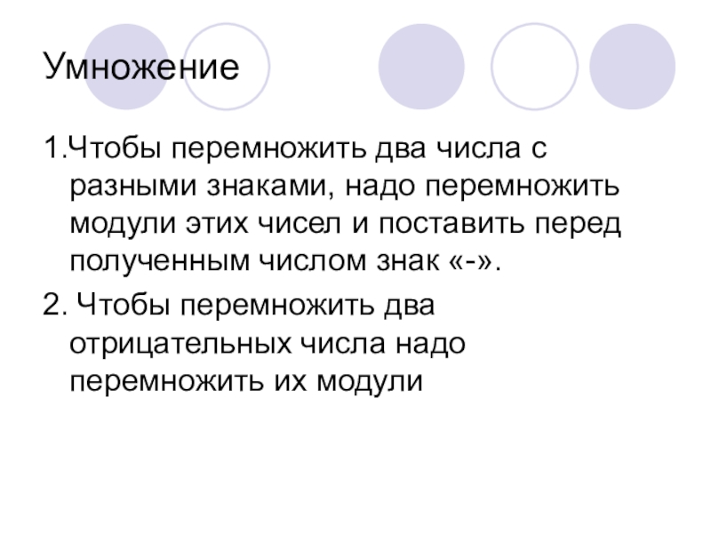 1.Чтобы перемножить два числа с разными знаками, надо перемножить модули этих