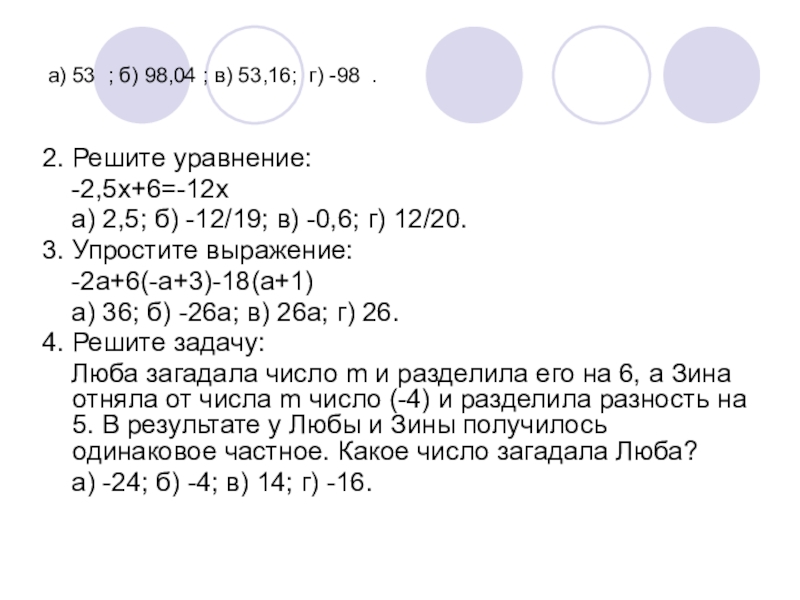 Слайд 24а) 53 ; б) 98,04 ; в) 53,16; г) -98 .