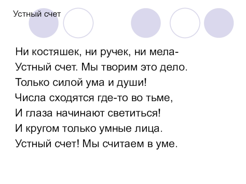 Устный счет! Мы считаем в уме.