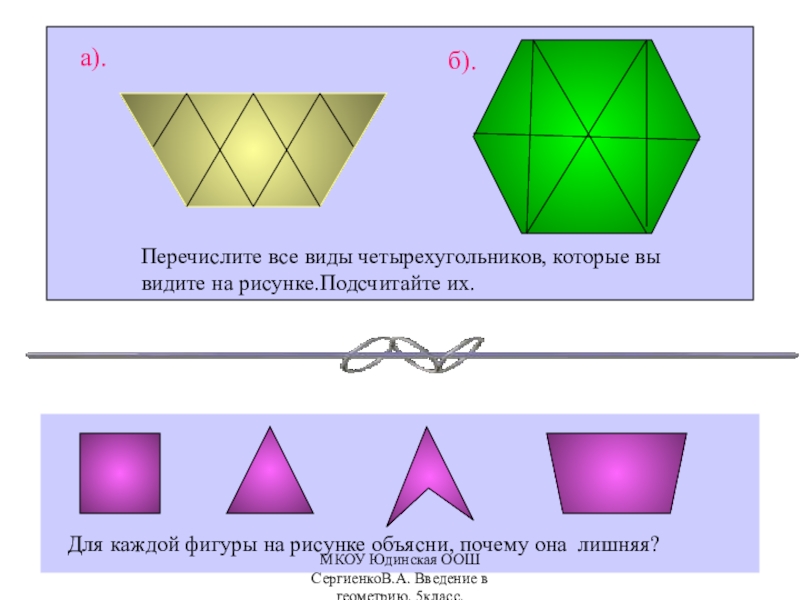 МКОУ Юдинская ООШ СергиенкоВ.А. Введение в геометрию. 5класс.