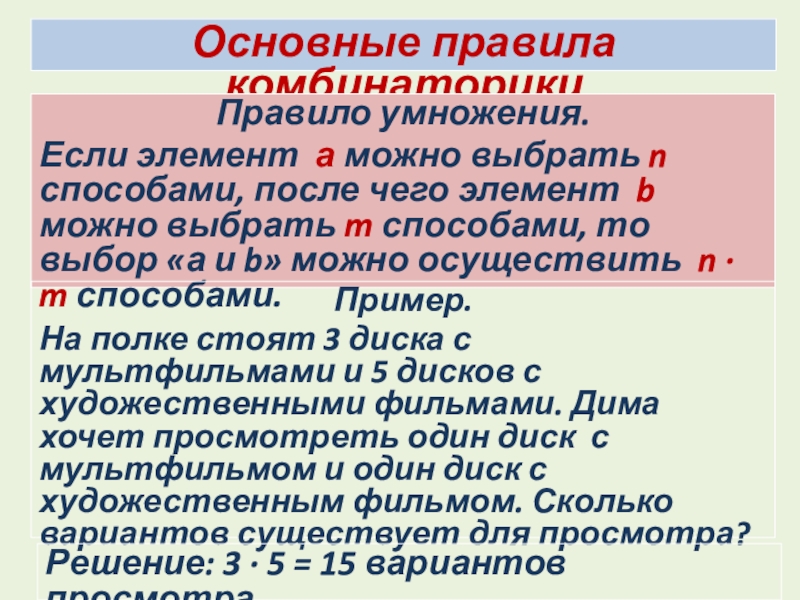 Решение: 3 · 5 = 15 вариантов просмотра.