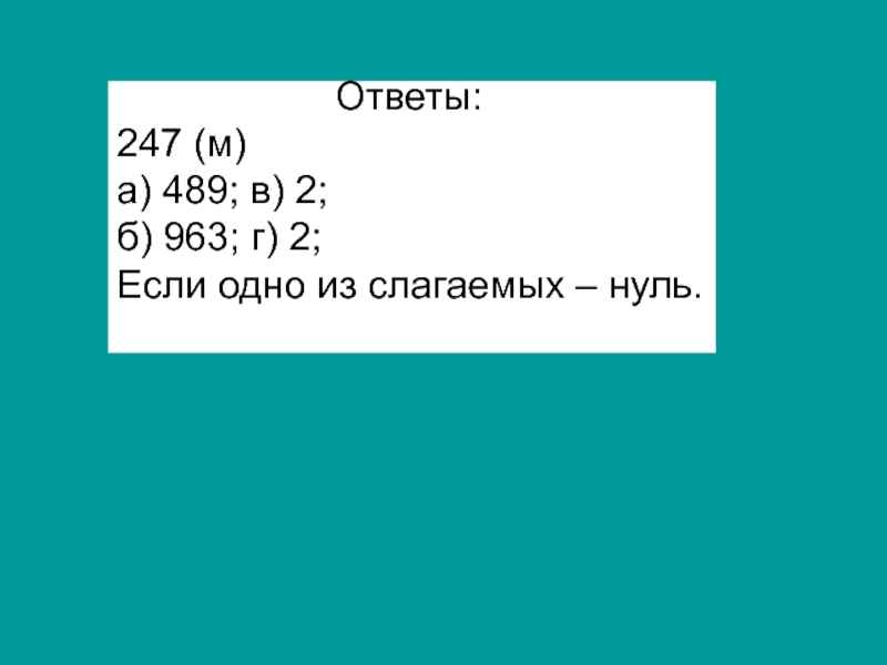 Ответы:247 (м)а) 489; в) 2;б) 963; г)