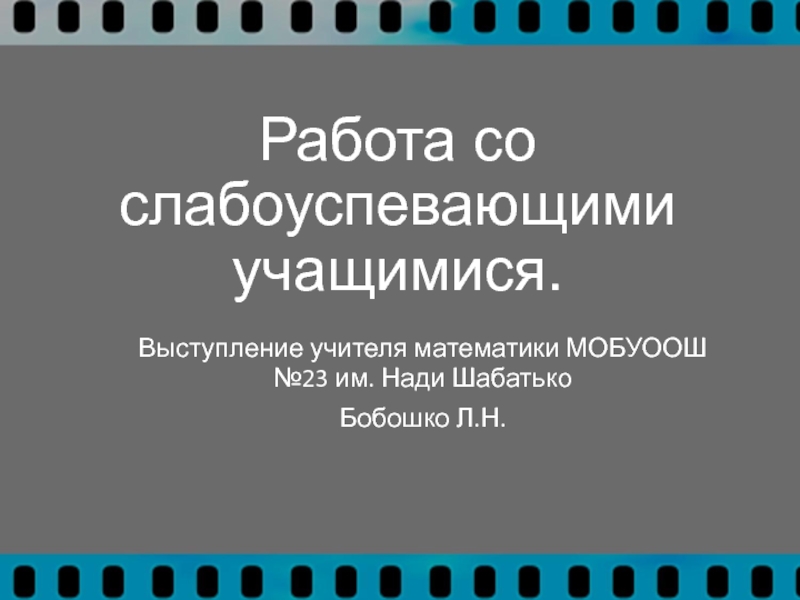 Работа со слабоуспевающими учащимися.Выступление учителя математики МОБУООШ №23 им. Нади Шабатько Бобошко Л.Н.
