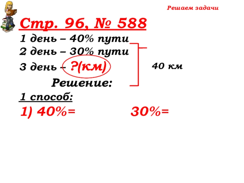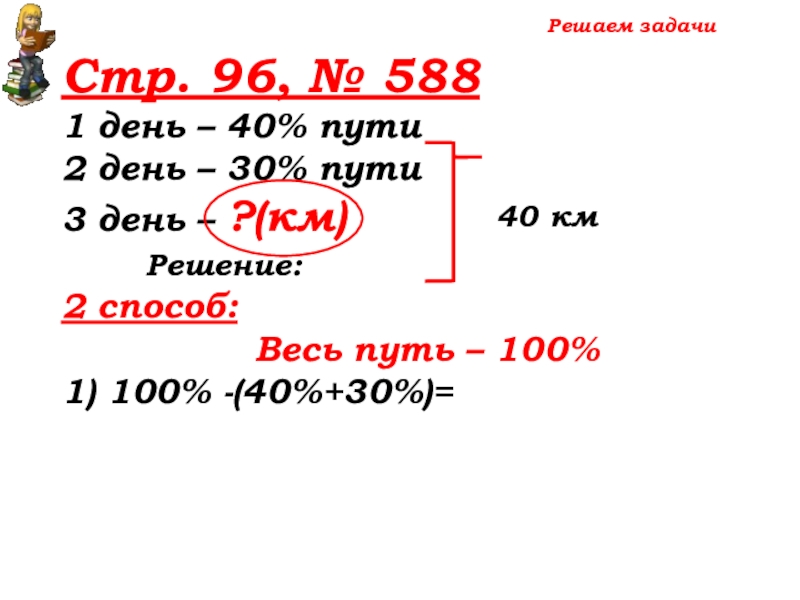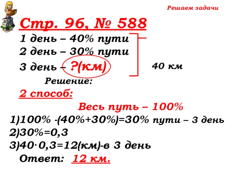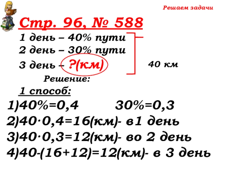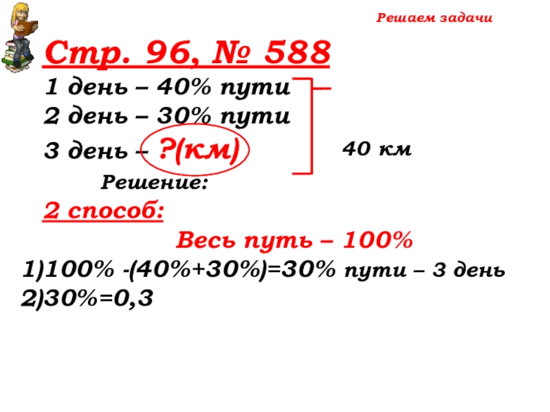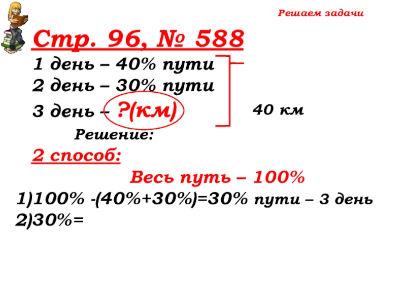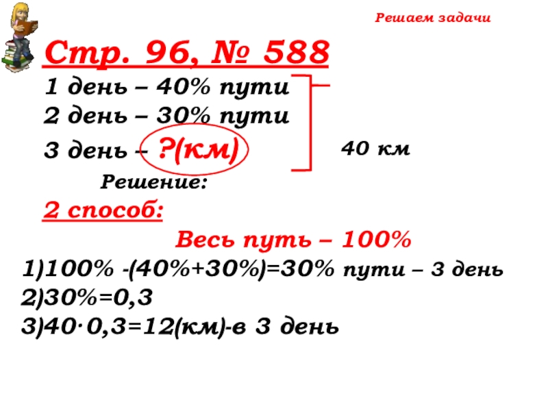100% -(40%+30%)=30% пути – 3 день