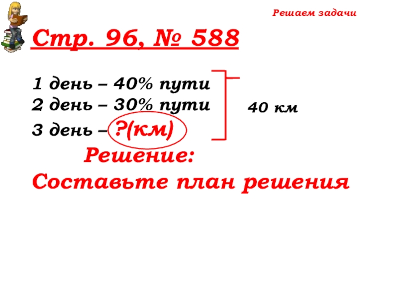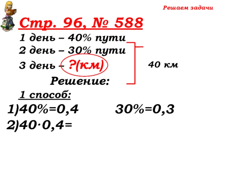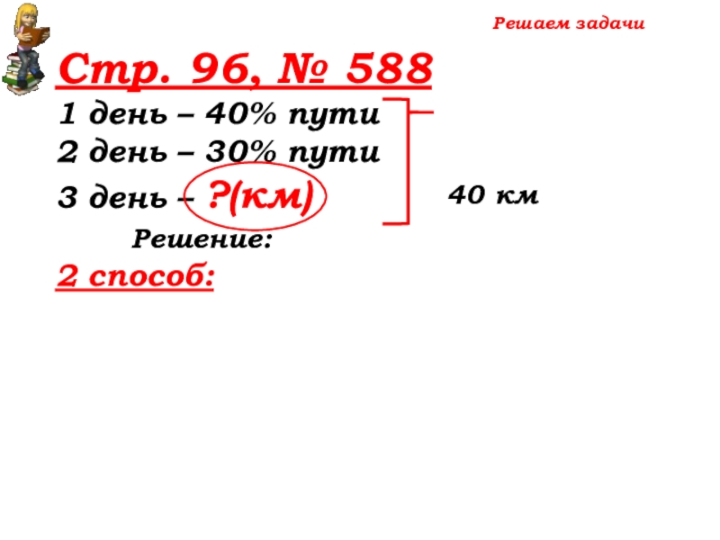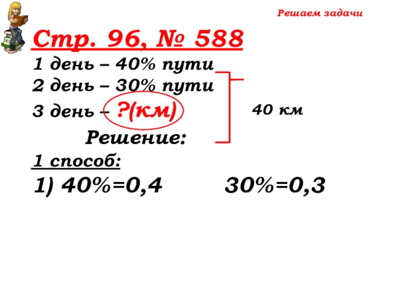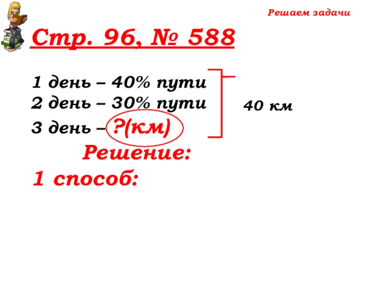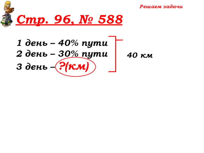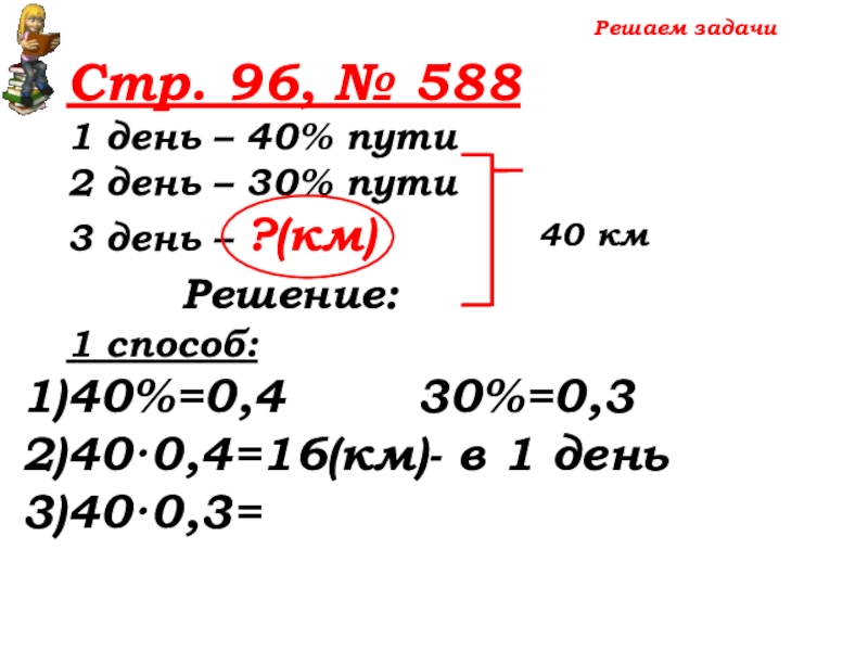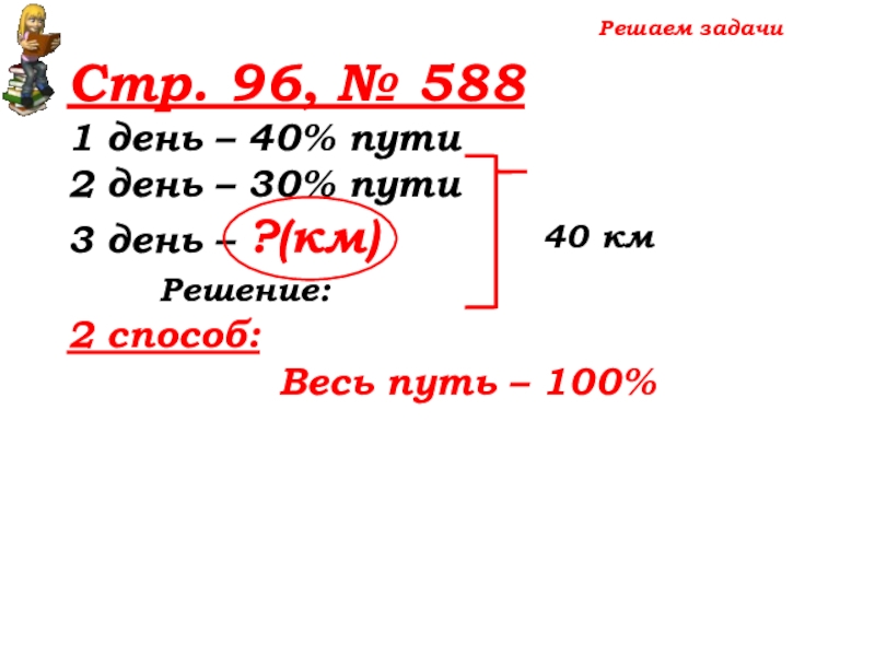 100% -(40%+30%)=30% пути – 3 день