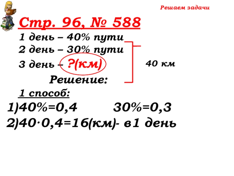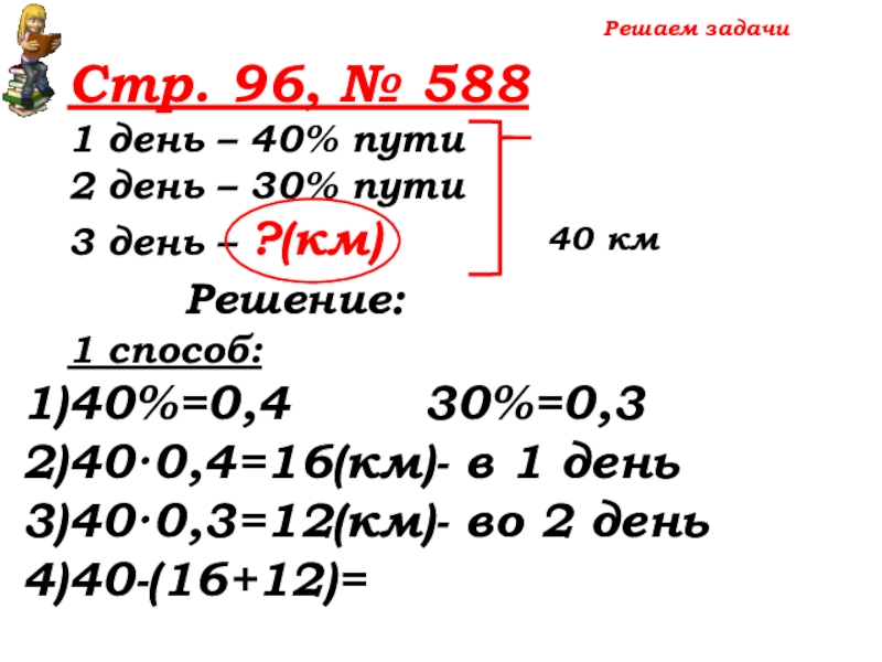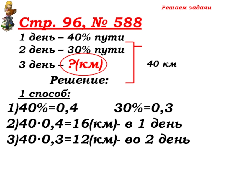 40·0,4=16(км)- в1 день