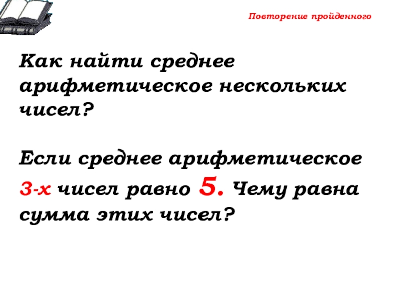 Если среднее арифметическое 3-х чисел равно 5. Чему равна сумма этих чисел?