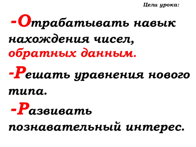 Отрабатывать навык нахождения чисел, обратных данным.