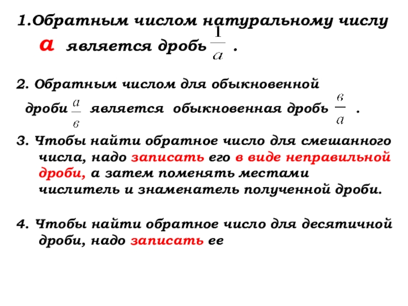 Слайд 421.Обратным числом натуральному числу а является дробь .