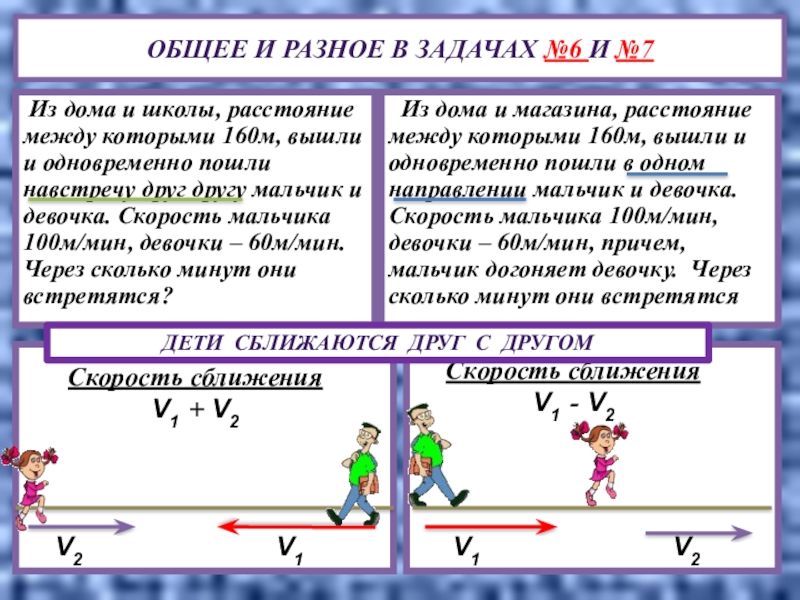 Из дома и магазина, расстояние между которыми 160м, вышли и одновременно пошли в одном направлении мальчик и девочка. Скорость мальчика 100м/мин, девочки – 60м/мин, причем, мальчик догоняет девочку. Через сколько минут они встретятся