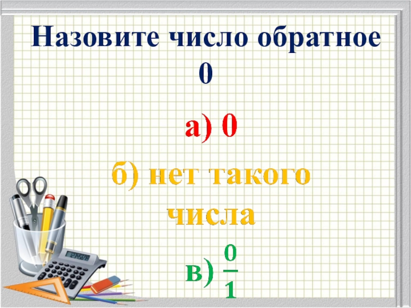 Слайд 6Назовите число обратное 0