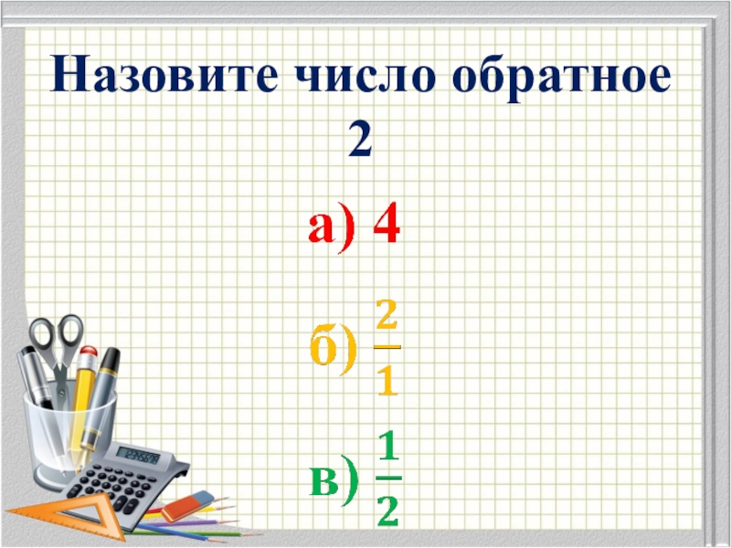Слайд 5Назовите число обратное 2