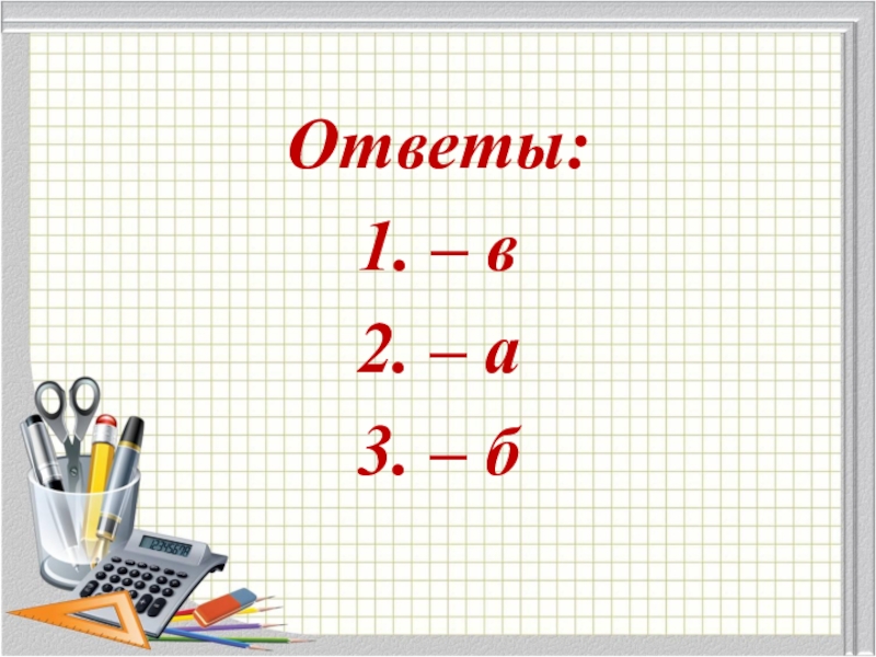 Ответы:1. – в2. – а3. – б