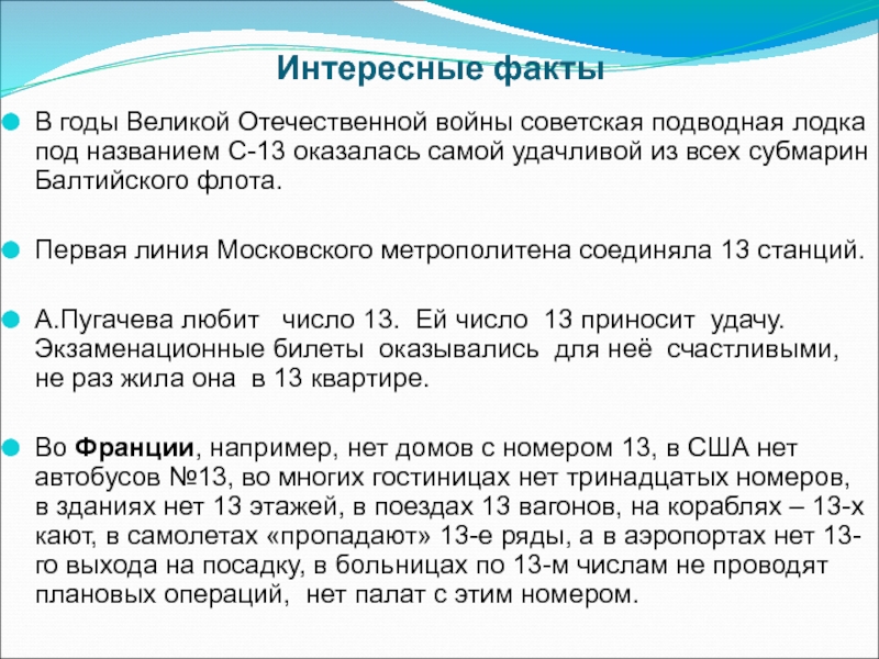 1. Изучить историю появления числа 13