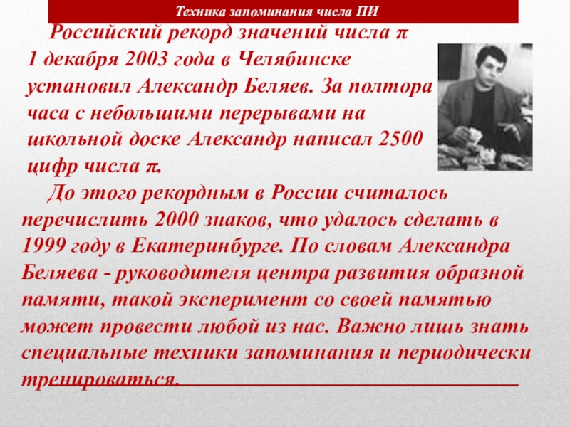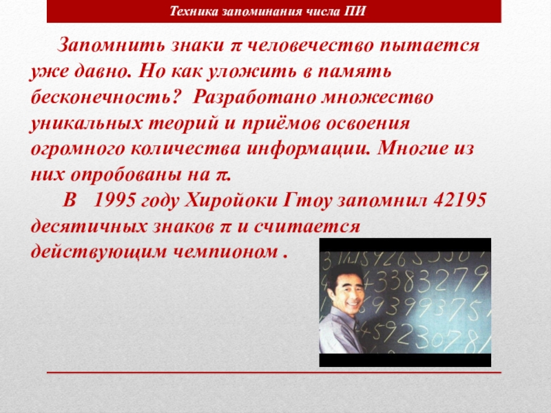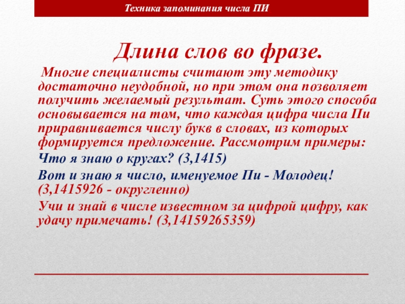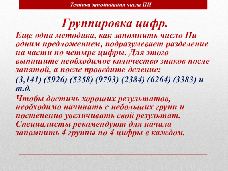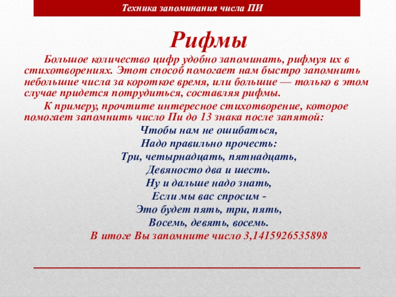 Техника запоминания числа ПИ.