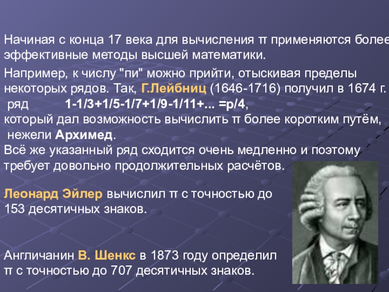 некоторых рядов. Так, Г.Лейбниц (1646-1716) получил в 1674 г.