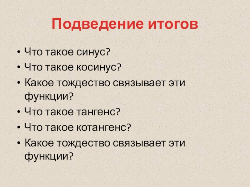 Тригонометрические функции