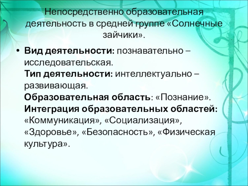 Слайд 2Непосредственно образовательная деятельность в средней группе «Солнечные зайчики».