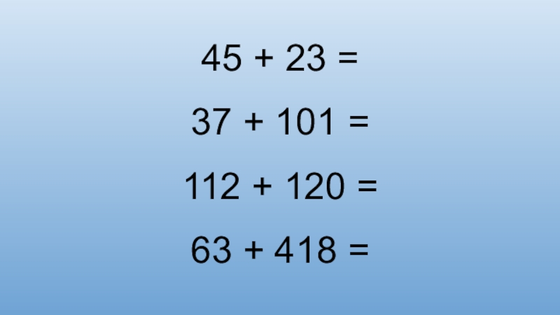 45 + 23 =37 + 101 = 112 + 120 = 63 + 418 =