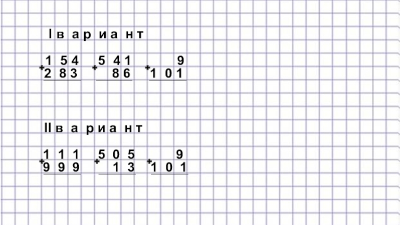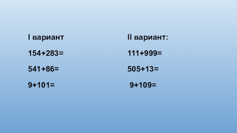 I вариант 154+283= 541+86=9+101= II вариант: 111+999=505+13= 9+109=