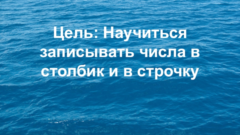 Слайд 4Цель: Научиться записывать числа в столбик и в строчку