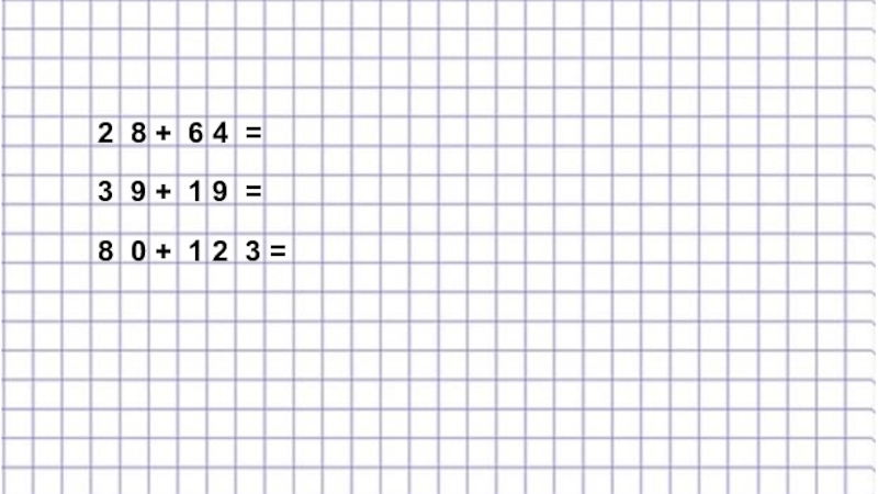 2 8 + 6 4 =3 9 + 1 9 =8 0 + 1 2 3 =