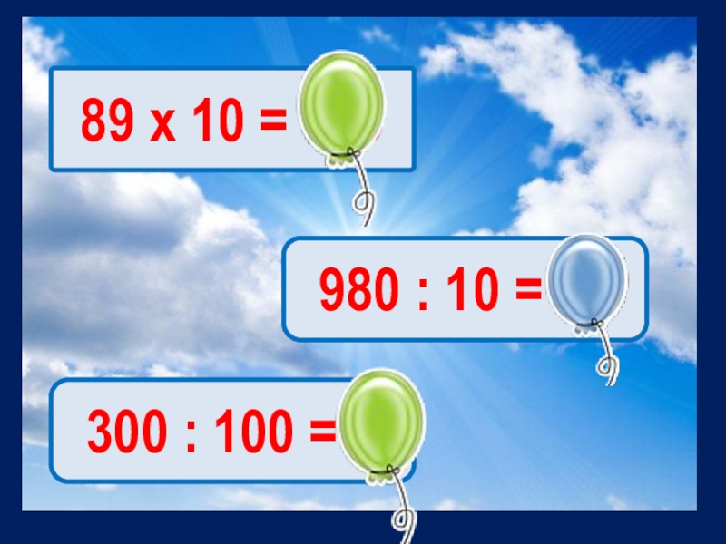 Слайд 1Запусти шарики в небо! Устный счет. 3 класс.