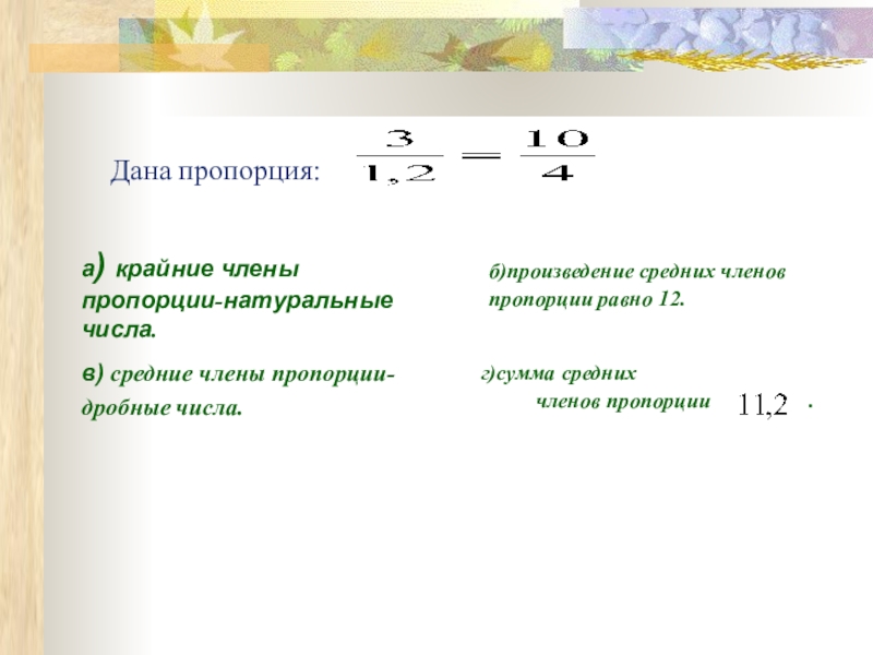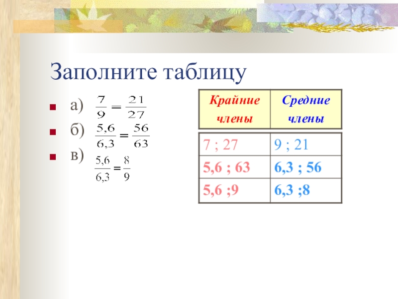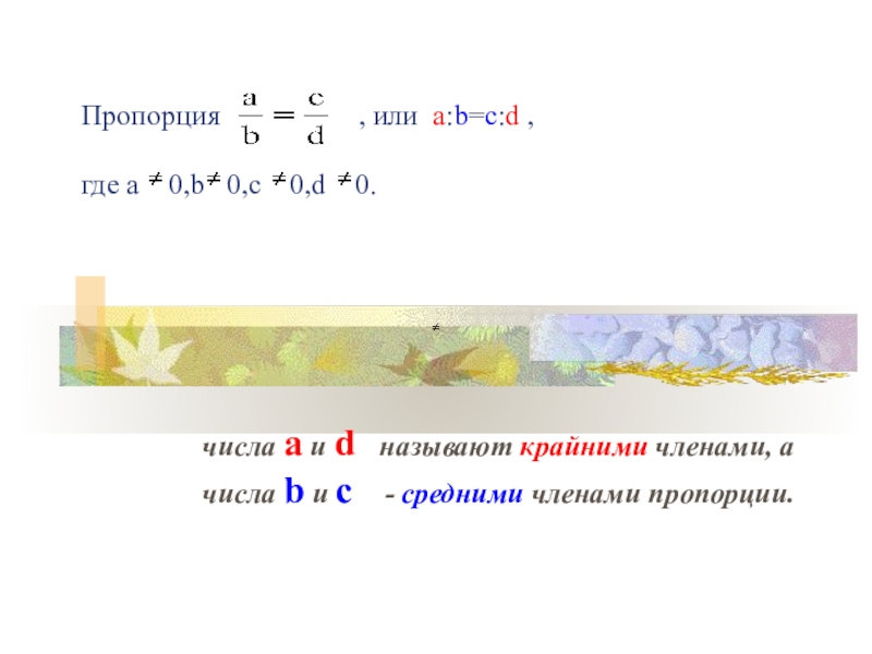 числа a и d называют крайними членами, а числа b и c - средними членами пропорции.