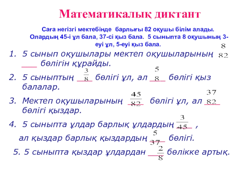 5 сыныптың ___ бөлігі ұл, ал ___ бөлігі қыз балалар.