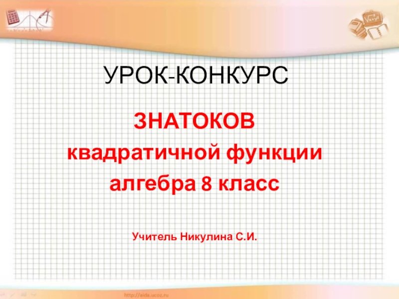 УРОК-КОНКУРСЗНАТОКОВквадратичной функцииалгебра 8 классУчитель Никулина С.И.