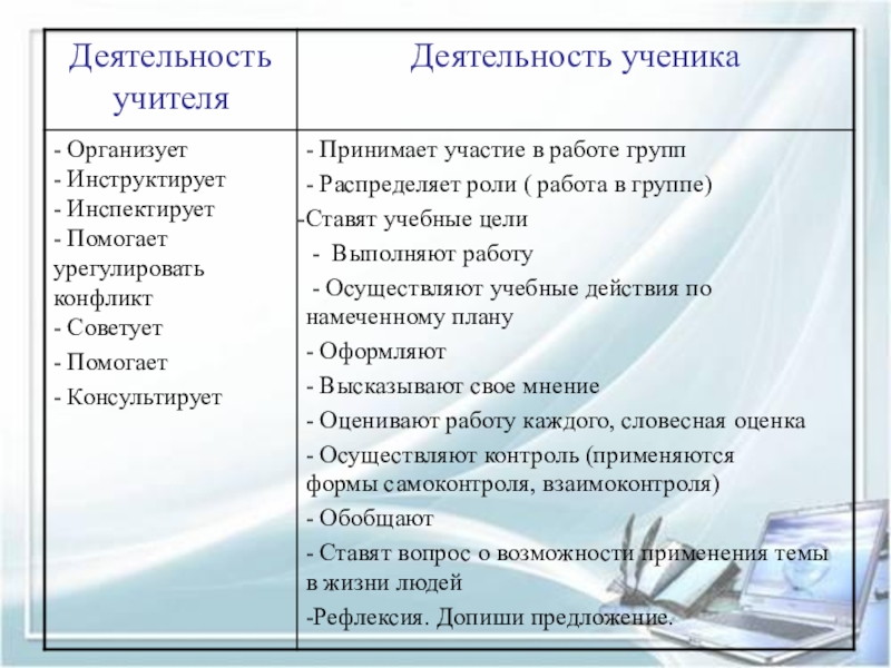 Не бойтесь «не стандартных уроков», попробуйте, различные виды игр, дискуссий и групповой работы для освоения материала.