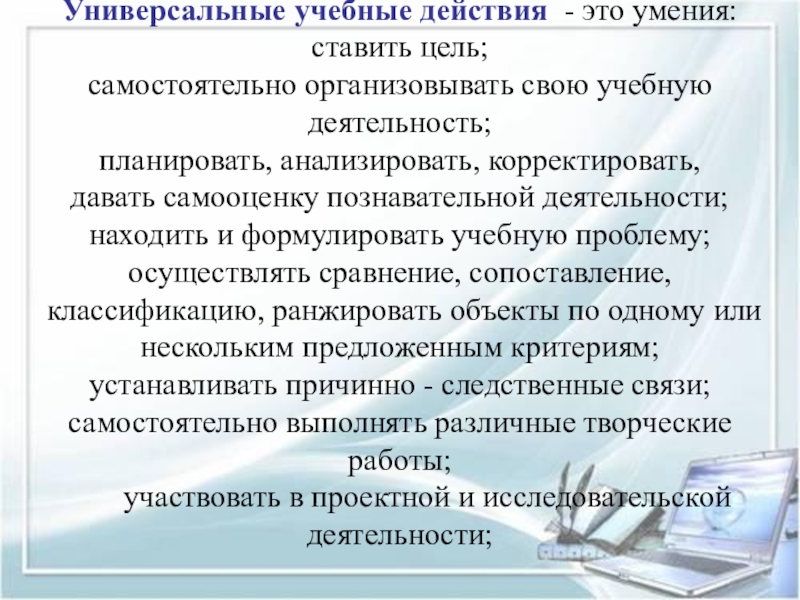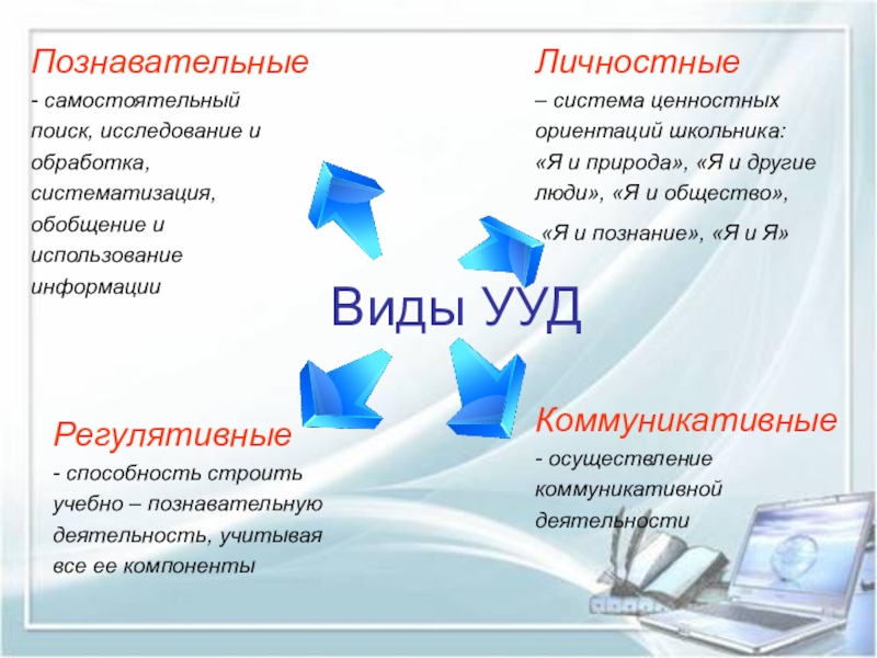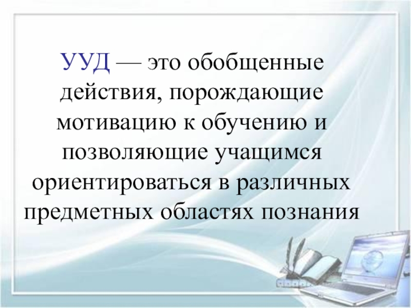 Слайд 5УУД — это обобщенные действия, порождающие мотивацию к обучению и позволяющие