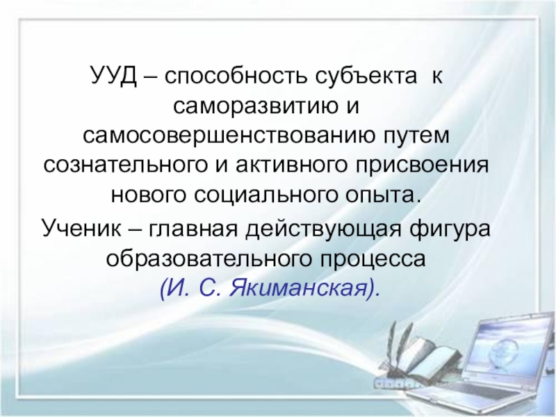 УУД – способность субъекта к саморазвитию и самосовершенствованию путем сознательного и
