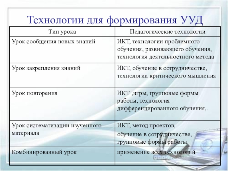 Регулятивные: преднамеренные «ошибки»; поиск информации в предложенных источниках; самоконтроль и взаимоконтроль; взаимный диктант; работа по алгоритму; диспут; ищу ошибку; контрольный опрос на определенную проблему;