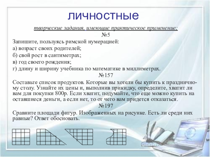 Составьте список продуктов. Которые вы хотели бы купить к празднично-му столу. Узнайте их цены и, выполнив прикидку, определите, хватит ли вам для покупки 800р. Если хватит, подумайте, что еще можно купить на оставшиеся деньги, а если нет, то от чего вам придется отказаться.