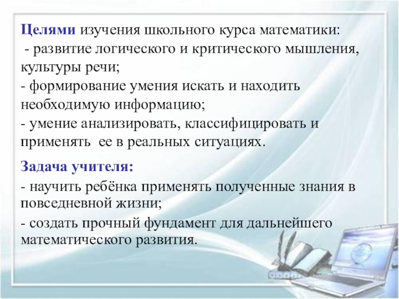 - умение анализировать, классифицировать и применять ее в реальных ситуациях.