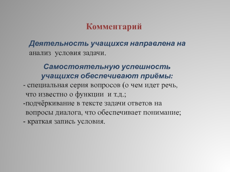 Анализ условия задачи