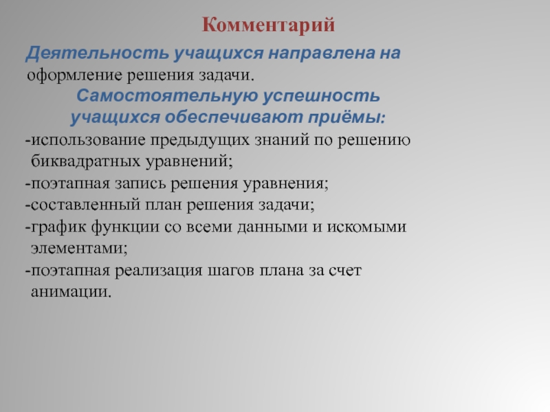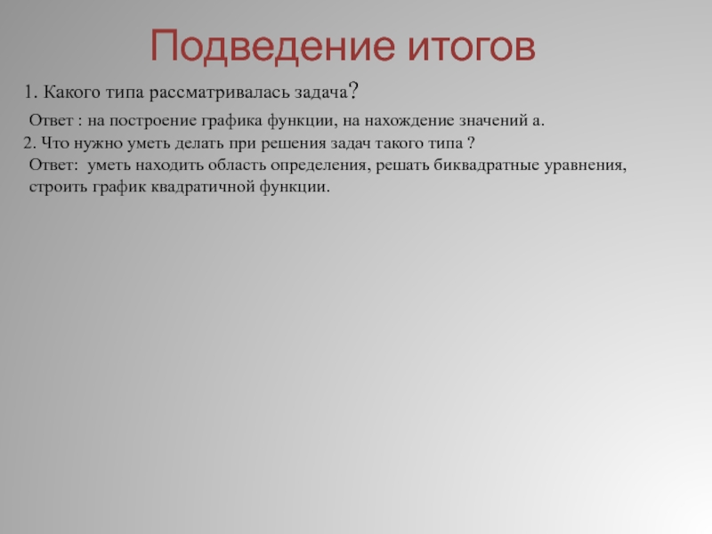 Ответ: уметь находить область определения, решать биквадратные уравнения,