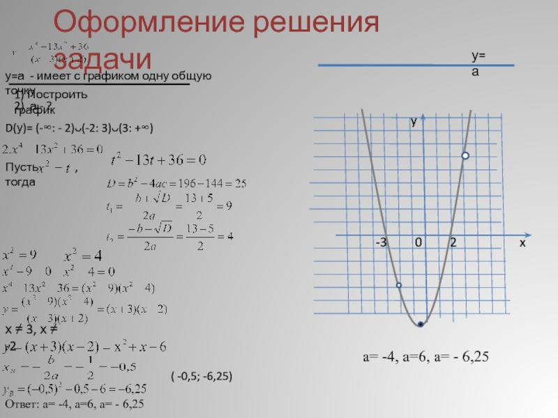 Ответ: значения а, при которых прямая с графиком имеет одну точку.