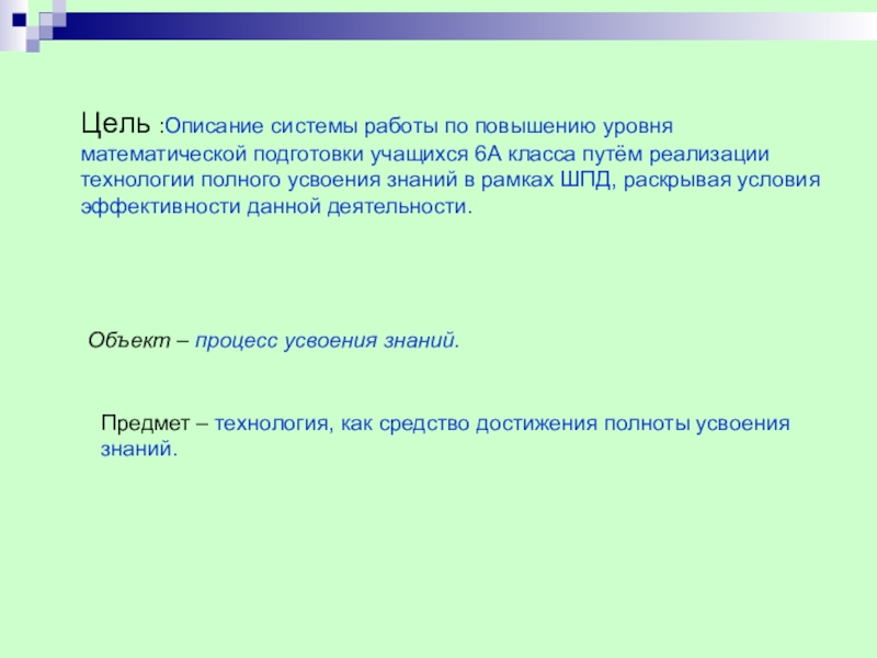 Предмет – технология, как средство достижения полноты усвоения знаний.