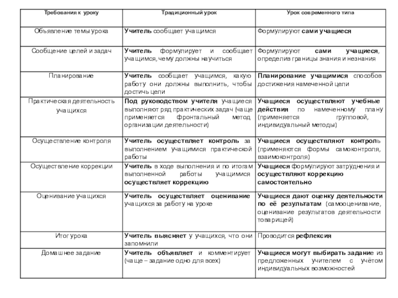 Отличие современного урока от традиционного