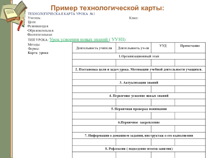 Пример технологической карты:ТЕХНОЛОГИЧЕСКАЯ КАРТА УРОКА №1Учитель: