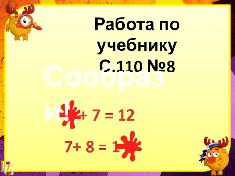 Работа по учебникуС.110 №87+ 8 = 1 55 + 7 = 12Сообрази!