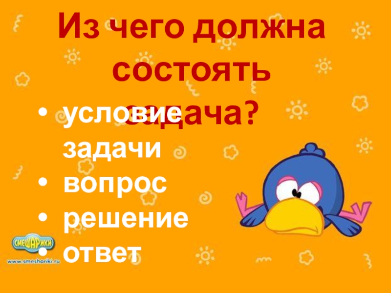 Из чего должна состоять задача? условие задачи вопросрешениеответ