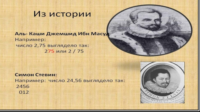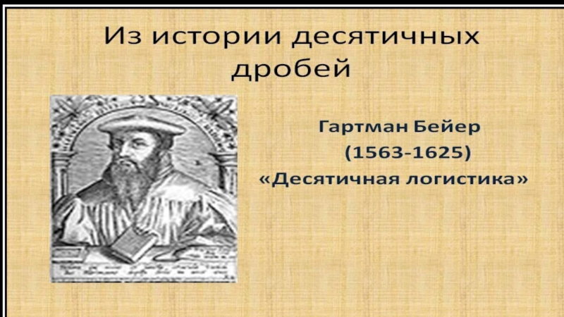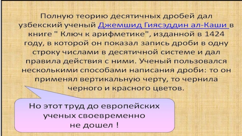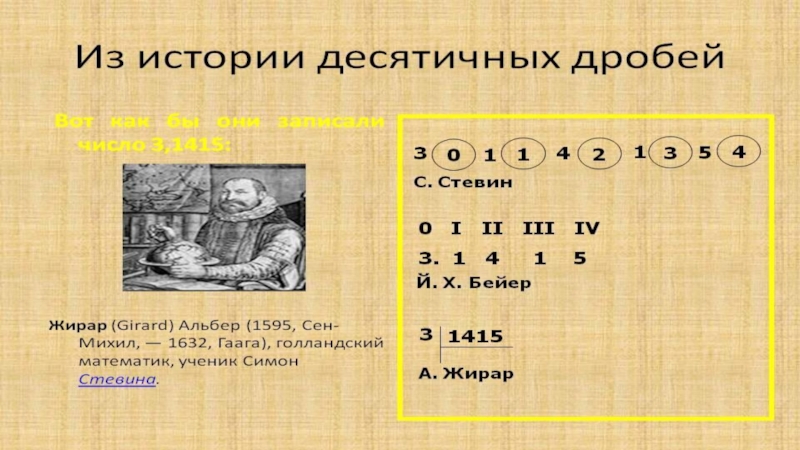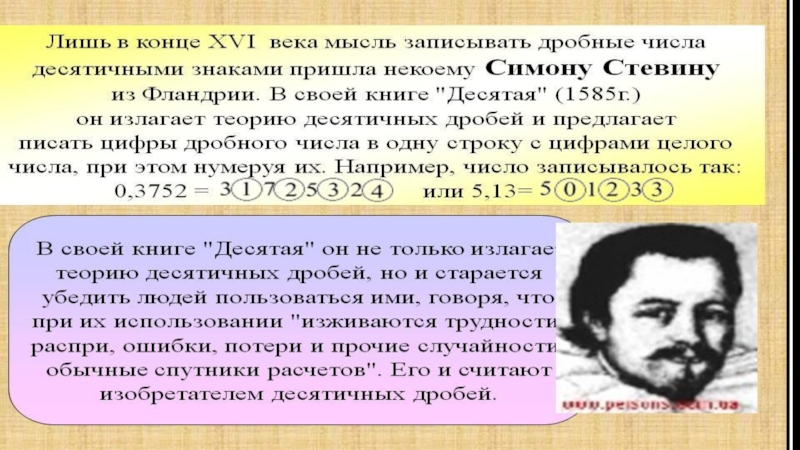 Презентация, доклад на тему Презентацция на тему История возникновения десятичных дробей