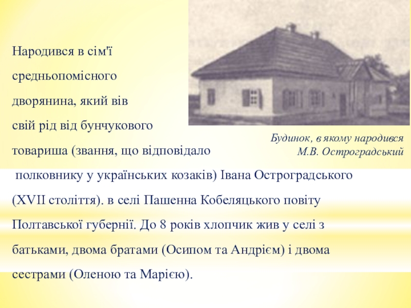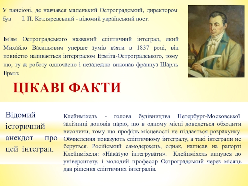 У пансіоні, де навчався маленький Остроградський, директором був І. П. Котляревський - відомий український поет.