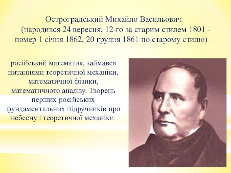 російський математик, займався питаннями теоретичної механіки, математичної фізики, математичного аналізу. Творець перших російських фундаментальних підручників про небесну і теоретичної механіки.